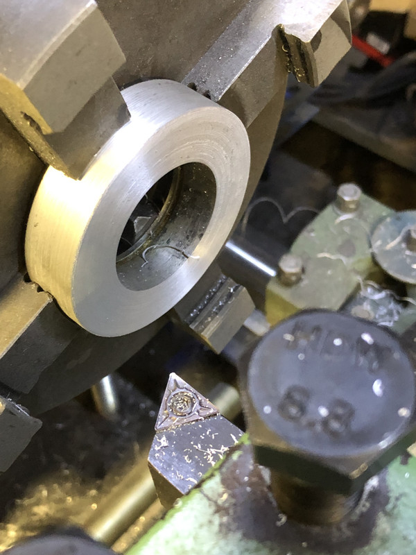 Usando las cuchillas HSS , las afilo en curva en vez de punta ,, les doy poca profundidad para el acabado en acero Monel